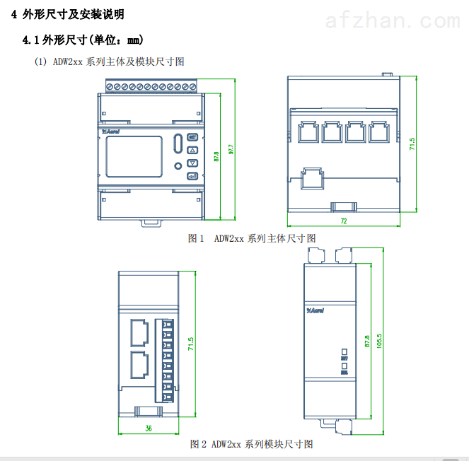 ADW2xx 智能物联网导轨式多回路电力仪表主要用于多个三相回路的全电参量测量,最多可同时接入四个三相回 路的电流输入。可直接或间接测量电压电流、功率、功率因数、相角、不平衡度、谐波等参数。